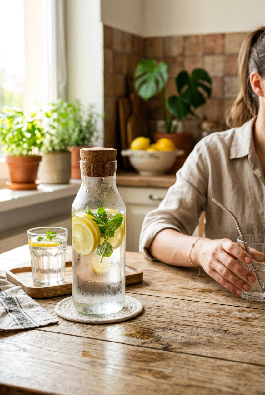 Try carrying a glass bottle and adding a pinch of sea salt or a squeeze of lemon to your water. These electrolytes help your body actually absorb the moisture rather than just flushing it through your system. You will notice that your lips look fuller, your eyes appear clearer, and your energy levels remain steady, preventing the “slumped” look that comes with mid-afternoon fatigue.