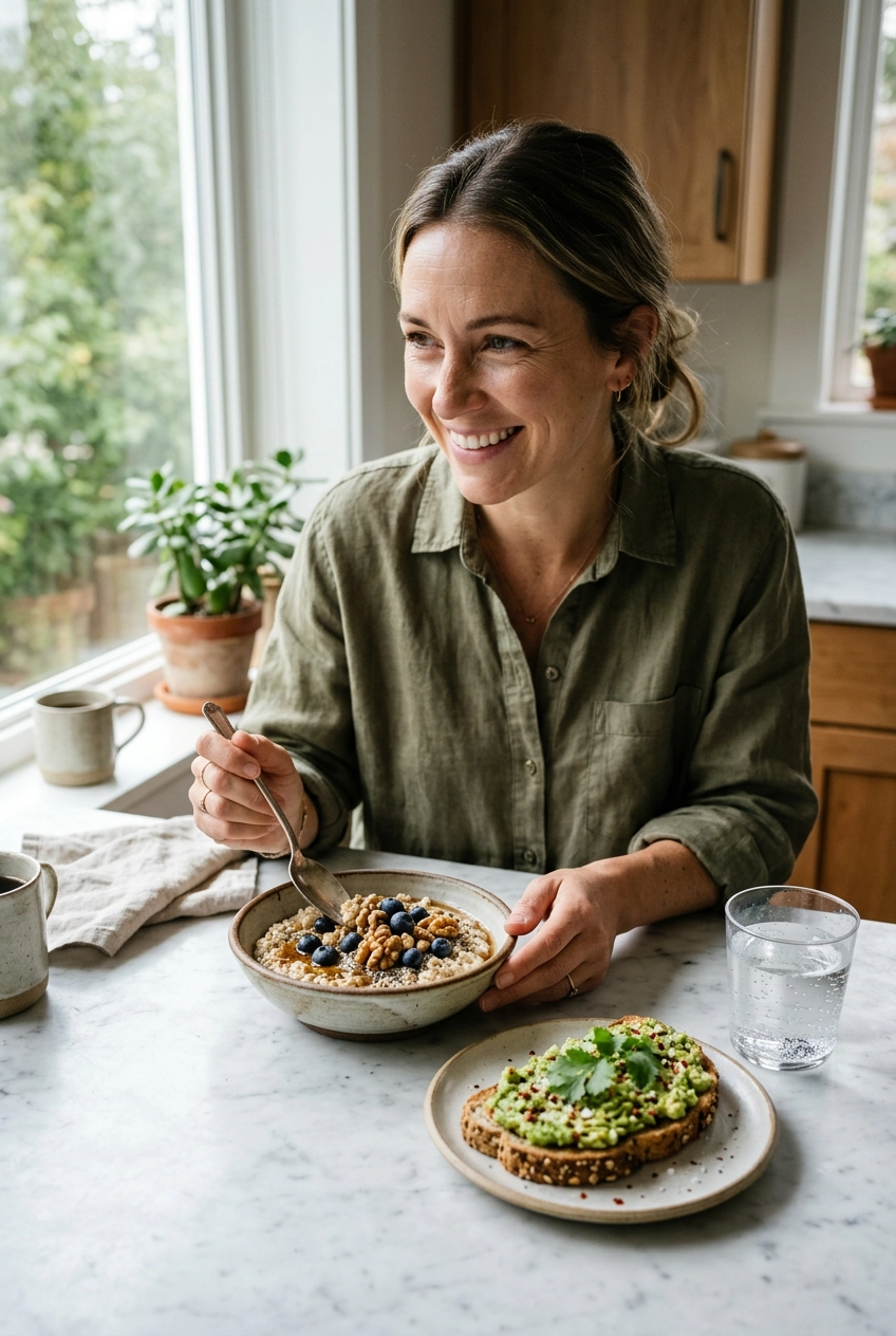 Try starting your day with a glass of warm water and a meal that includes healthy fats like avocado or walnuts. These fats are essential for maintaining the lipid barrier of your skin, keeping it supple and resistant to environmental stress. By avoiding the “sugar crash” cycle, you also prevent the facial sagging and “stressed” expressions that often accompany energy dips. Your face remains calm, bright, and energized from the inside out.