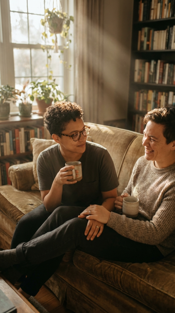 - Be Present: When you’re together, be together. Minimize distractions, put away your phone, and give your partner your undivided attention. It makes every moment more meaningful. If you find yourself slipping into what I call “roommate syndrome,” small habits are key to bringing the spark back – sometimes, just being present is the most powerful. You can read more about it in Feeling “Roommate Syndrome”? 5 Small Habits to Bring the Spark Back.
