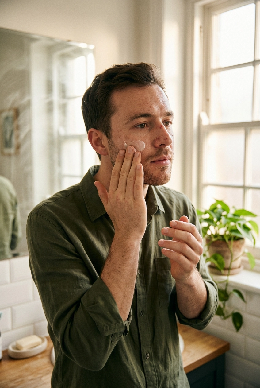 - Audit Your Products: Toss out the “5-in-1” soaps. Get a dedicated face wash, moisturizer, and SPF.