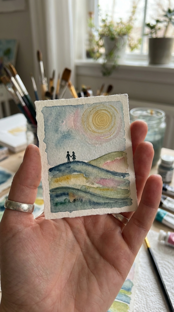 Even if you don’t consider yourself an artist, a simple, heartfelt piece of art can be incredibly touching. This could be anything from a watercolor painting of a place special to you both, a line drawing of her favorite animal, or even a creative abstract piece in her favorite colors.