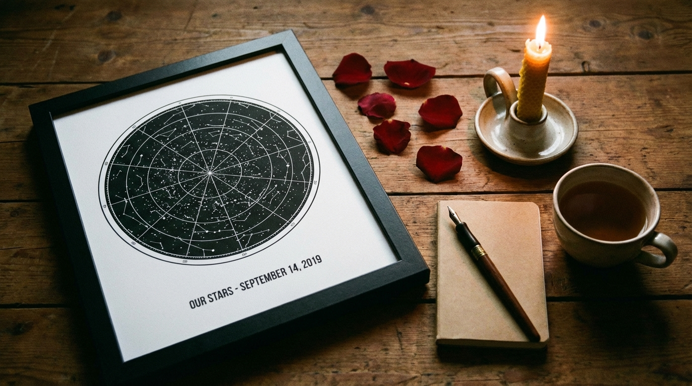 What it is: A framed poster showing the exact alignment of the stars in the night sky at a specific moment in time.