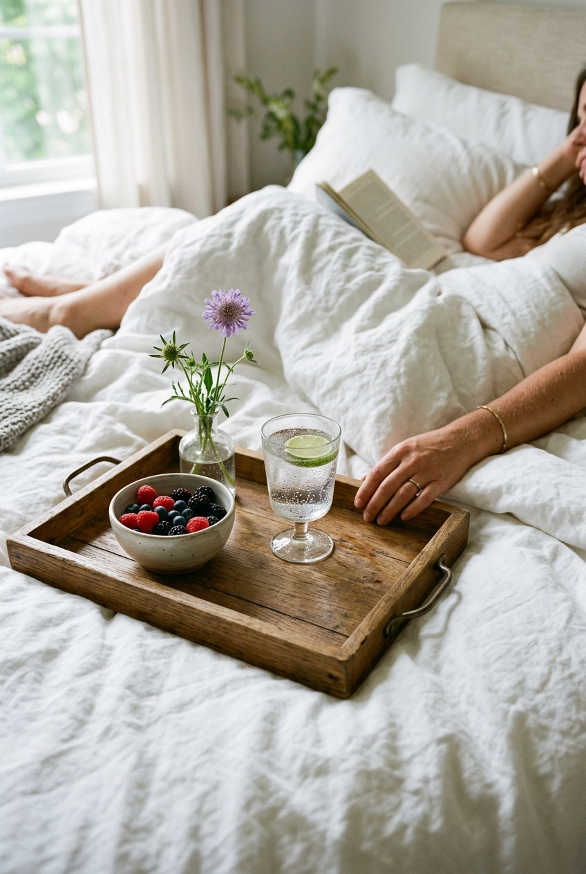 While she is out or in another room, transform the bedroom. Dim the lights, put on a playlist of ambient lo-fi music, and set out a “spa kit.” This could include a high-quality silk robe, a new face mask, and a heated eye mask. If you want to go the extra mile, prepare a warm foot soak with Epsom salts and essential oils. When she walks in, her only job is to exist and relax. This isn’t about you “giving” her a massage (which can sometimes feel like a demand for physical intimacy); it’s about providing her the space to be alone with her thoughts and her comfort.